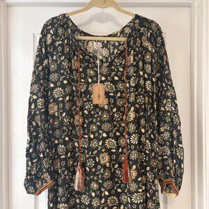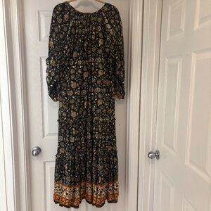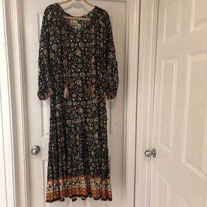 Natural Life Lula Dress. Boho tiered and ruffled floral long-sleeve maxi dress.