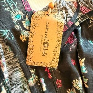 Stylish top with multicolor floral design. Ideal for everyday wear. Loose fit, more like a Large or oversized look. Brand new, never worn.