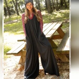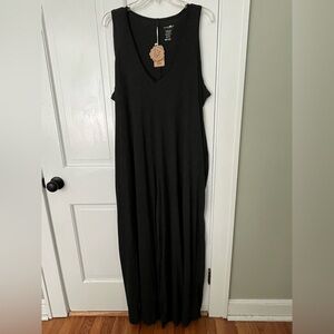 Natural Life One Size Stretch Jersey Knit V Neck Jumpsuit Sleeveless Wide Leg