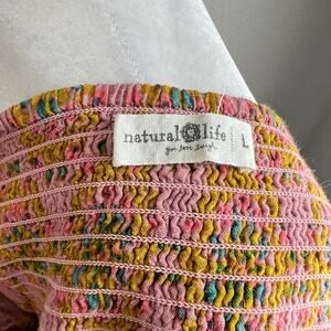 Natural Life Patricia Boho Mini Sun Dress Women's L Relaxed Floral Colorful