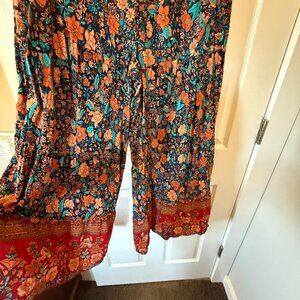 Natural Life - Patti Palazzo Pant - Navy Red Floral Border - XL