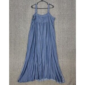 Natural Life Patti Side Slit Maxi Dress Women XXL Blue Chambray Boho Cottagecore.