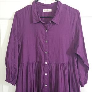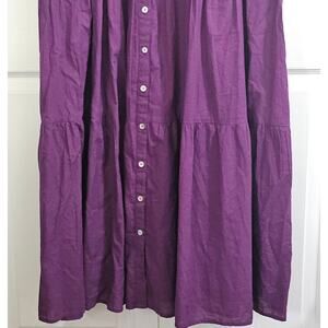 Excellent, like new condition. Beautiful dark purple plum color. Maxi length with multiple tiers skirt. Front button closure and long sleeves. Very lightweight.