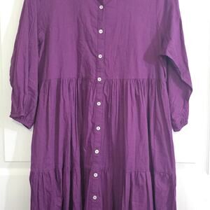 Natural Life Purple Bohemian Peasant Dress Medium Festival Summer Cotton Tiered