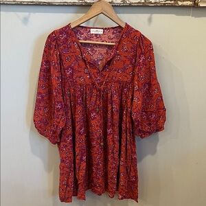 Natural Life Rayon Floral Print Mini Dress Babydoll Sz M Boho Hippie