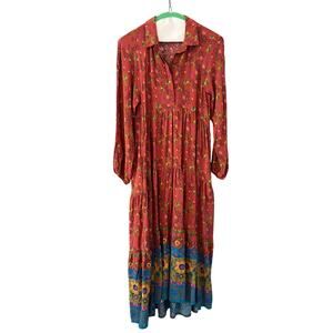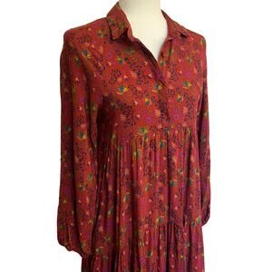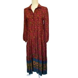 Natural Life Rebecca Midi Dress Floral Long Sleeve Tiered Size XS