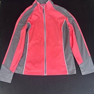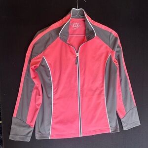Stylish red and gray jacket by Natural Life. Features a full zip front and contrasting sleeves. Perfect for casual wear.