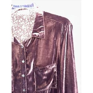 Natural Life Size Large Brown Velvet Button Down Floral Flip Cuff Gorpcore