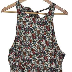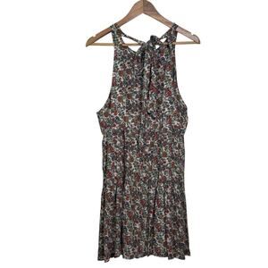 Natural Life Size Large Floral High Neck Tie Back Open Back Tiered Mini Dress