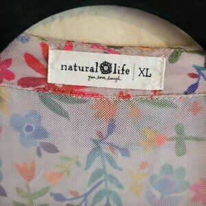 Natural Life Top Women's XL Multicolor Floral Sheer Rusched Front Buttons Boho
