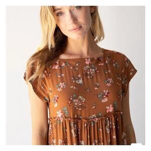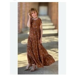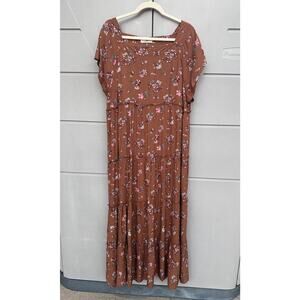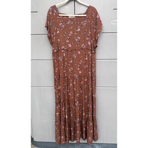 Natural Life Women's Berkley Maxi Dress Brown Bouquets XL Cottagecore Prairie