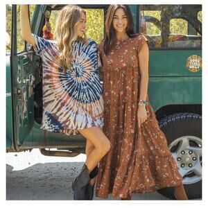 Natural Life Women's Berkley Maxi Dress Brown Bouquets XL Cottagecore Bohemian