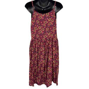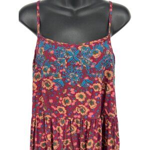 Natural Life Womens Medium Floral Sundress Embroidery Red Blue Boho