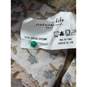 Natural Life Womens Mini Shirt Dress Tunic Button Up Patchwork Green Tan Size S