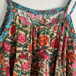 Natural Life Womens Small Floral Sleeveless Tiered Dress Square Neck