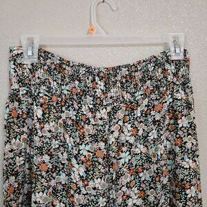Hippy boho style wide leg palazzo pant! I love this pattern and the colors it's honestly one of my favorite they have ever carried! I kept this bc I was loosing weight but it just never fit my body unfortunately. Little floral pattern is tasteful and vintage with blush pink, pale turqouise and rust orange, light tan and black. Front of the waist is a wide flat band of fabric and the back is smocked. The legs are wide and flowy in a rayon. I love offers!
