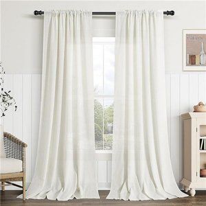 🧿Light Filtering & Airy: Beautifully frames your windows with a soft and hazy vision. Linen textured curtain draperies don't completely block the sunlight but gently filtering out harsh sunlight. The open weave lets in plenty of fresh air when you have the curtains closed but window open