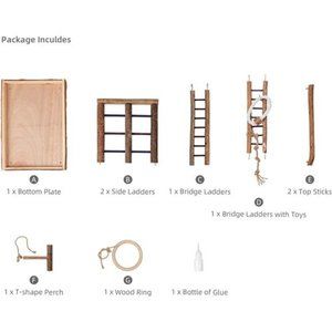 The Niteangel Bird Activity Center is ideal for Parakeets and other small/medium bird. It consists of ladders, cotton ring, rope, perch and easy to assemble.