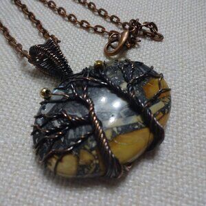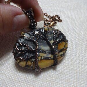Natural MALIGANO JASPER Handmade COPPER WIRE-WRAPPED Pendant/Chain #833B