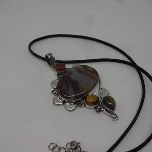 Natural "MONTANA AGATE, TIGERS EYE & CARNELIAN" Handmade Sterling Pendant on a 18" Black Leather #312