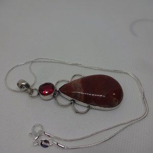 Natural "MOOKAITE JASPER & RUBY" Handmade Sterling Pendant on a 18" Chain 450