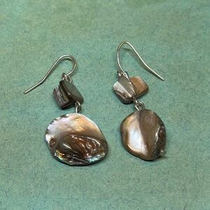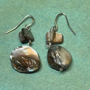 Natural MOP Abalone Shell Purple Grey Bead Dangle Hook Pierced Earrings 1.75”