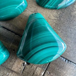 Natural Malachite Fan Shaped Pendants - Perfect for jewelry making or wire wrapp