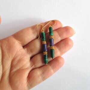 Natural Malachite Kingman Purple Turquoise Earrings Gold Vermeil Sterling Silver