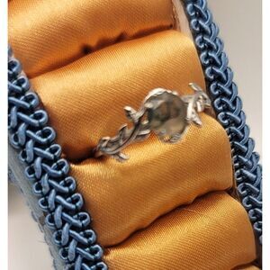 Beautiful sterling silver leafy with a morganite stone. The striations in this make each one unique. This is a beautiful, size 6 ring.