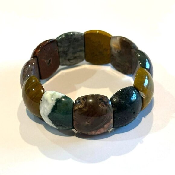 Natural Multi-Color Jasper Stone Bracelet Stretch Gemstone Healing Boho Chic