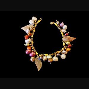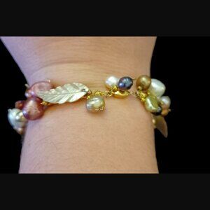 Natural Multicolor Mother Of Pearl Lead Gold Tone 7.5" Bracelet
