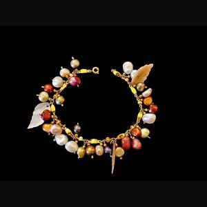 Add a touch of elegance to your outfit with this stunning 7.5" bracelet. The bracelet features a beautiful multicolor mother of pearl design, with a lead gold tone finish. The natural creation of the pearls adds a unique touch to the piece, making it a perfect addition to any jewelry collection. The bracelet is 7.5" in length, making it suitable for a variety of wrist sizes. The secondary stone adds an extra element of style to the bracelet, while the main stone remains unseen. This bracelet is perfect for nature-inspired themes and can be worn for any occasion.