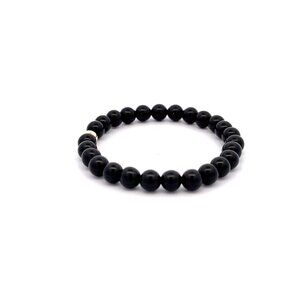 Natural Obsidian Gemstones 6mm Stretchable Bracelet 18k Gold Bead Charm