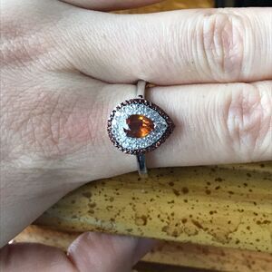 Natural Orange Garnet Sterling Silver Teardrop Ring Size 10