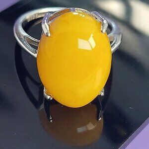 Natural Oval Amber 17x12mm 925 Sterling Silver Ring
