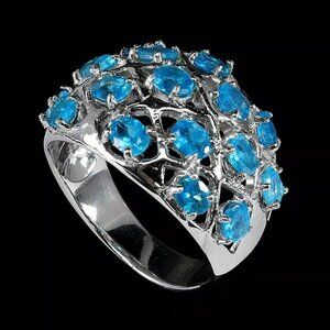 Natural Oval Blue Apatite 4x3mm 925 Sterling Silver Ring Size 8.75