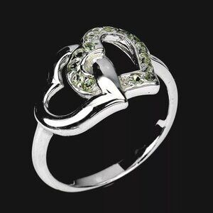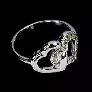 Natural Peridot 925 Sterling Silver Double Heart Ring Sz 6.5
