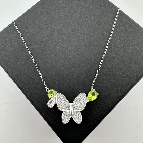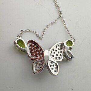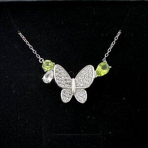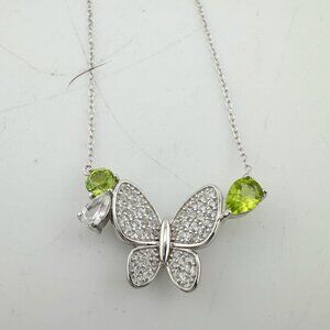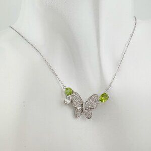 Pretty and sweet natural peridot butterfly necklace. Pear cut and round peridot gemstones on each side of white gemstone and sterling silver butterfly. Simply Lovely.