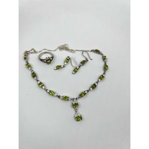 Natural Peridot Gemstone 925 sterling silver Handmade necklace Set Earning Ring