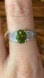 This pretty ring is made with natural, earth mined Manchurian peridot and white zircons. Zircons are earth mined gemstones. They are not the same as cubic zirconia, which is man-made/lab created. The total gemstone carat weight on the ring is 1.91, and the peridot stone measures 9x7mm. The ring is set in solid .925 sterling silver with a rhodium plate to prevent tarnishing. The ring in the photos is the actual one you will receive, so please see photos for quality and measurements. Size 9.