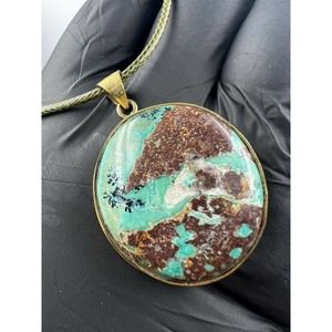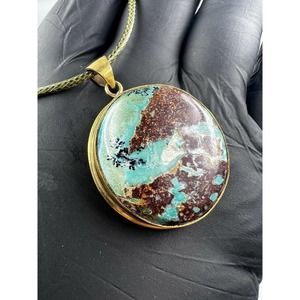 Natural Persian Turquoise Pendant Metal Brass Handmade With Rope.