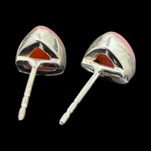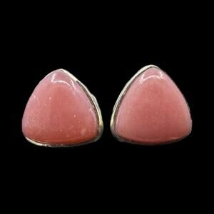 Natural Peruvian Pink Opal stud earrings are triangular in shape, bezel set, and measure 8mm x 8mm x 8mm. Butterfly clutch backs.