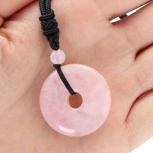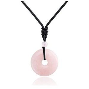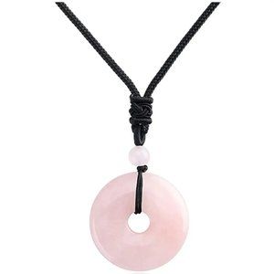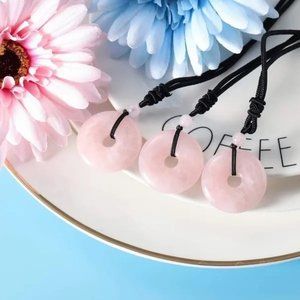 Natural Pink Opal Stone Donut Pendant Necklace Gemstone - Boho, Bohemian