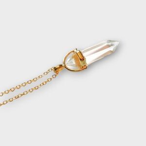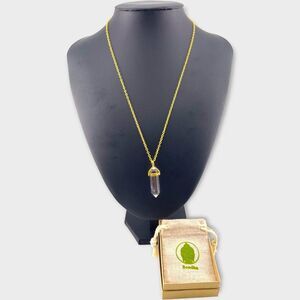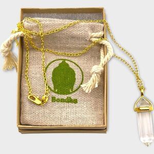 Crystal Quartz Chakra Pendant housed in 18K gold plated hardware. Crystal measures 1.25in, chain is 20in. Lobster claw closure. Individually wrapped in an eco-friendly box with brand jewelry pouch. NEW, never worn.