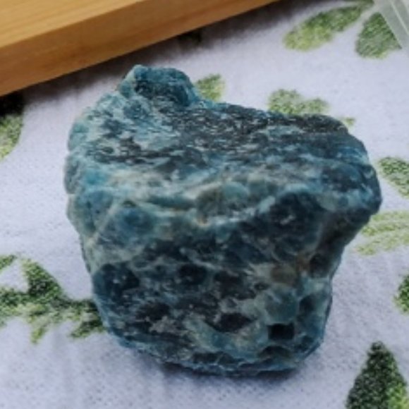Raw Natural Crystal Apatite #9 stone Healing Crystals. Apatite heals bones and encourages formation of new cells. It aids absorption of calcium and helps cartilage, bones, teeth, and motor skills and ameliorates arthritis. This stone suppresses hunger and raises the metabolic rate, encouraging healthy eating, heals the glands, meridians, and organs, and overcomes hypertension. It balances the physical, emotional, mental, and spiritual bodies, and the chakras, eliminating overactivity and stimulating underactivity. Used with other crystals, Apatite facilitates results. Blue Apatite connects to a very high level of spiritual guidance. Read more about attributes of Apatite crystal.