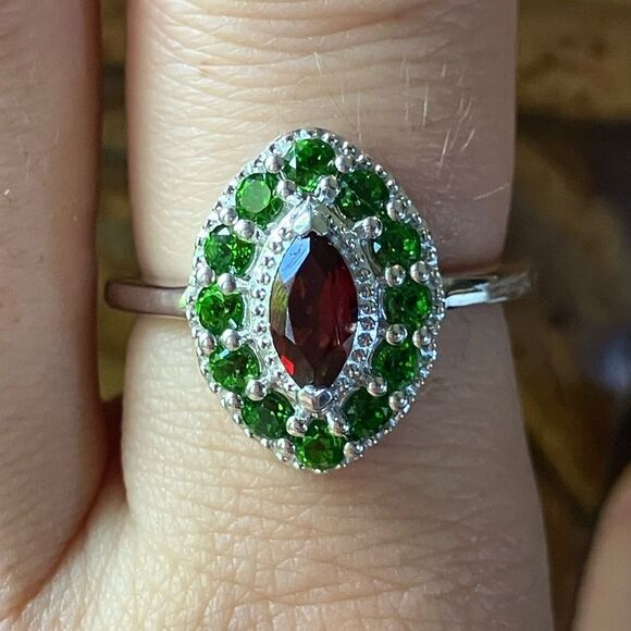 Natural Red Garnet Chrome Diopside Sterling Silver Ring