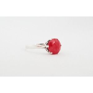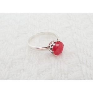 Natural Red Rhodonite Ring, Faceted Rhodonite 925 Sterling Silver Size 7.5