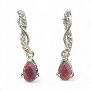 Pretty pop of color on these Ruby and Diamond accent dangle earrings made of solid 925 Sterling silver. Brand New. Gift Boxed. Ruby is July’s birthstone