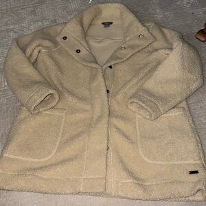 Natural Refelections cream fuzzy button up coat pockets warm XL long