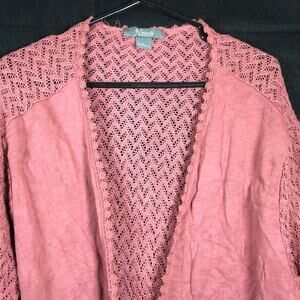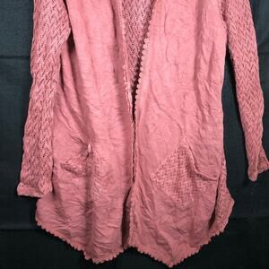 Natural Reflection Womens Sweater Pink Open Front Cardigan Open Knit Large